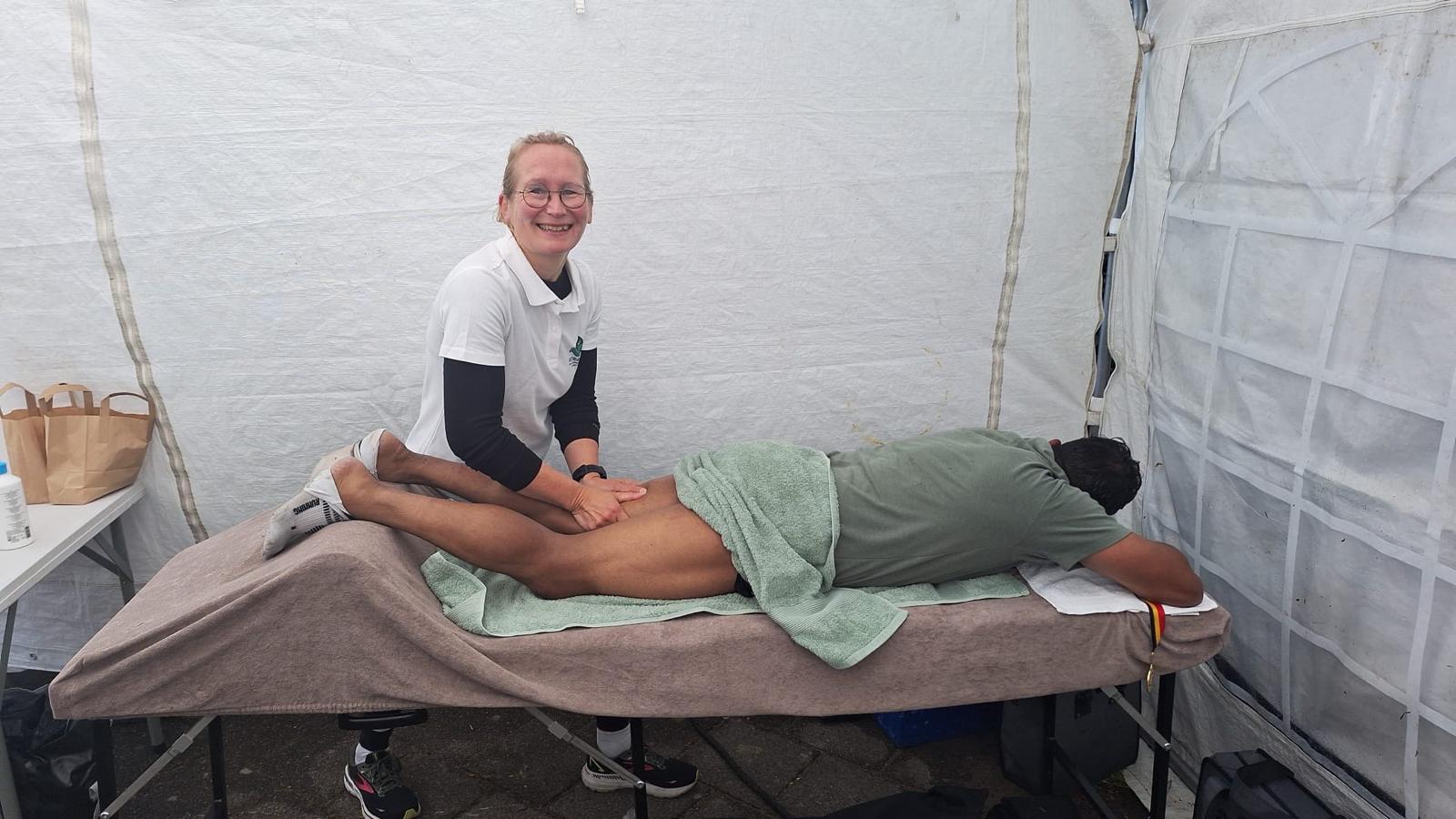 Het was een dag vol regen, hagel en harde wind. Juist daarom hadden de sporters een ontspannende massage meer dan verdiend. De massage was gericht op spierherstel, zodat zij hun lichaam de zorg kregen die het nodig had na deze uitdagende tocht.
